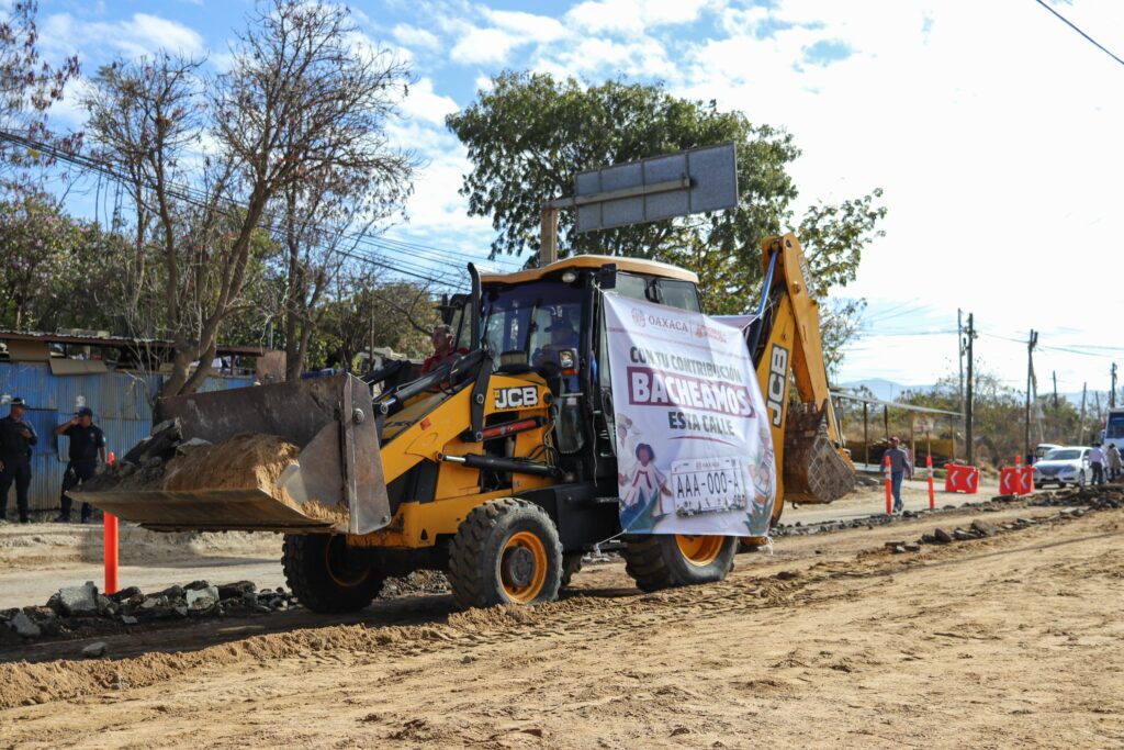 Mientras la maquinaria remueve el poco asfalto existente en la carretera, los vecinos se saludan y conversan con el Cabildo del municipio de Santa Cruz Xoxocotlán, quienes atienden sus peticiones: aparte del bacheo, la inseguridad y el tema de la basura son prioritarios, afirman, mientras, los funcionarios públicos toman nota.
